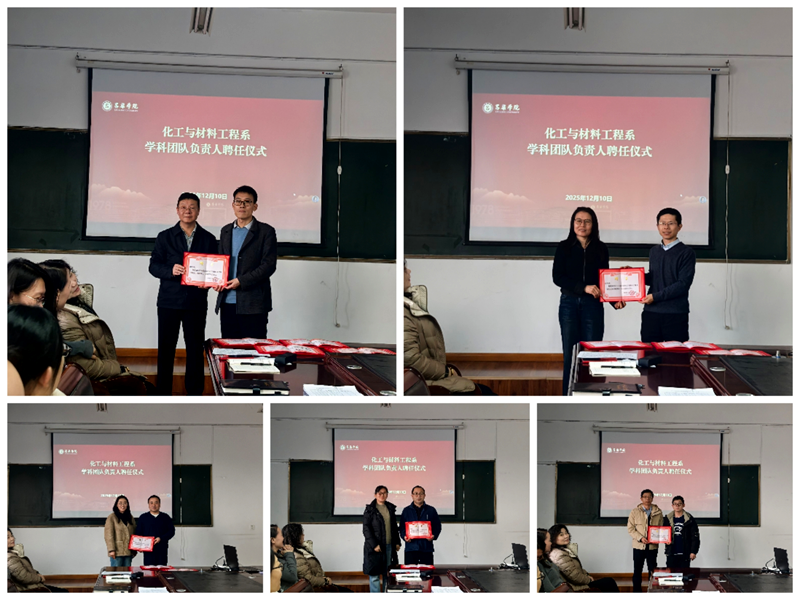 为深入贯彻学校“十五五”规划精神,强化学科建设与团队协作,推动“材料与化工”专业硕士学位点实现突破性进展,化工与材料工程系于12月10日下午3点在教学一区209会议室隆重举行学科团队负责人聘任仪式。系领导班子成员及全体教职工共同参加了仪式。